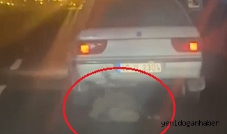 Kayseri-Malatya yolunda ölü bir domuzu otomobilinin arkasına bağlayarak sürükleyen Ö.M., polis tarafından yakalandı.